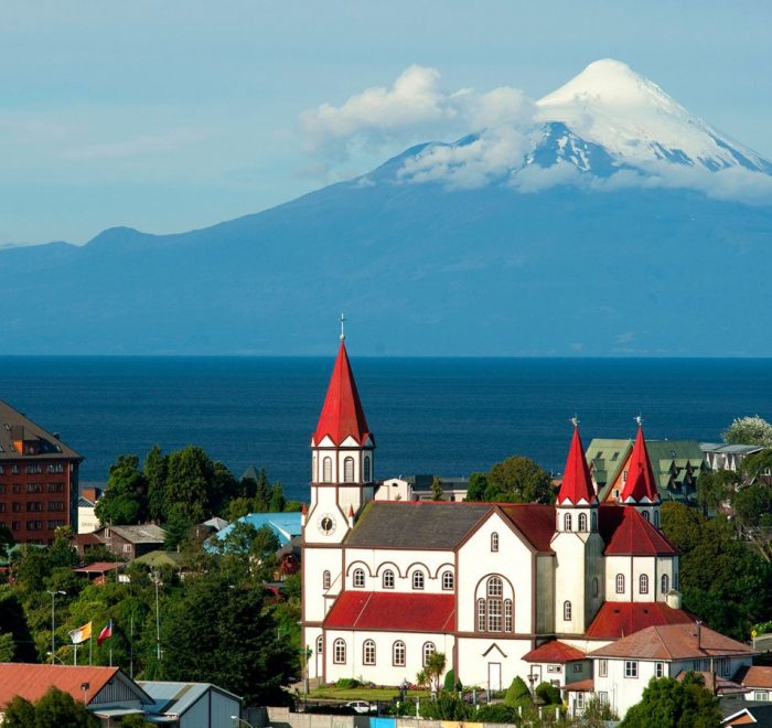 Se ubica en la ribera suroeste del extenso lago Llanquihue, que ofrece imponentes vistas de los volcanes Calbuco y Osorno, cubiertos de nieve y aún activos. La arquitectura de estilo alemán tradicional caracteriza a la ciudad y refleja su pasado colonial. La Iglesia del Sagrado Corazón de colores rojo y blanco se construyó a comienzos del siglo XX y tiene 3 torres llamativas.